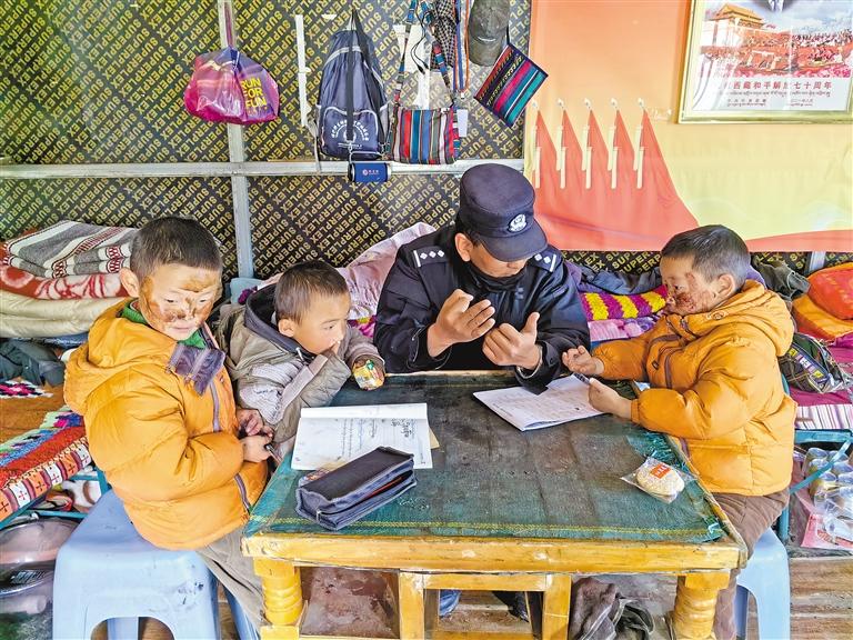 圖為壩鄉(xiāng)派出所民警正在輔導(dǎo)孩子們學(xué)習(xí)。記者 彭琦 攝