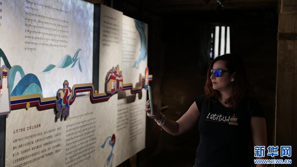 6月5日,境外旅行商在西藏山南市瓊結(jié)縣強(qiáng)吉村參觀。新華網(wǎng) 柑丹鴦琦 攝