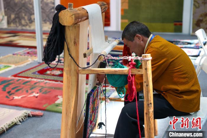 圖為現(xiàn)場展示加牙藏族織毯技藝。中新社記者 薛蒂 攝