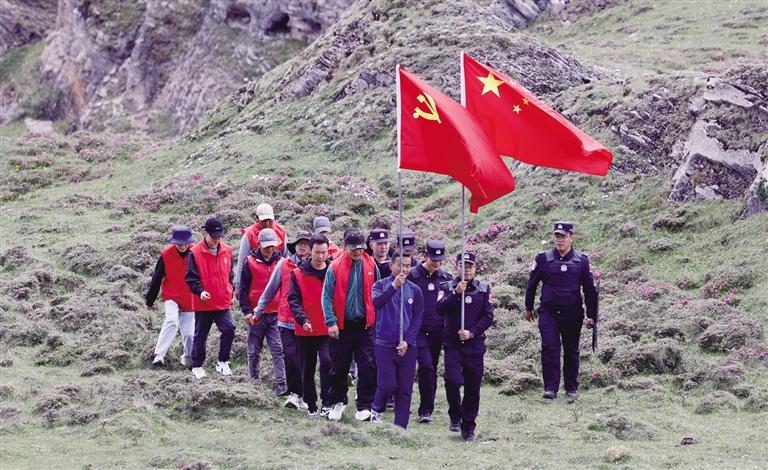 7月1日清晨,當?shù)谝豢|陽光照亮蜿蜒山脊,一支由日喀則邊境管理支隊帕里邊境派出所聯(lián)合駐地黨委和政府、社區(qū)居委會、消防站等共建單位組成的聯(lián)合巡邏隊伍整裝出發(fā),開展“賡續(xù)紅色血脈·共筑守邊長城”主題巡邊活動。