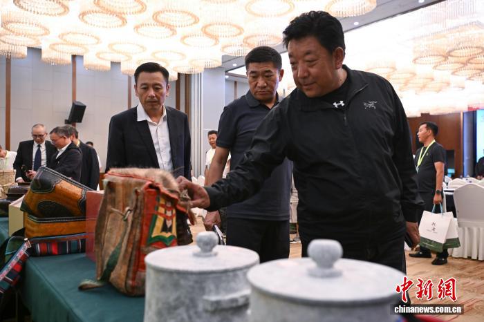 圖為參會人員參觀特色產(chǎn)品展示區(qū)。 貢嘎來松 攝