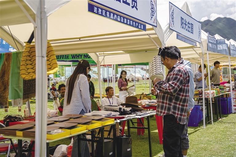 40余家特色參展商帶來(lái)了本土特色酸奶、手工藝品、青稞制品等琳瑯滿(mǎn)目的商品,讓人目不暇接。市民曲嘉說(shuō):“今天跟朋友來(lái)達(dá)孜區(qū)過(guò)林卡,恰好碰上林卡音樂(lè)季,這里有音樂(lè)、有美食,真的很不錯(cuò)?!?/p>