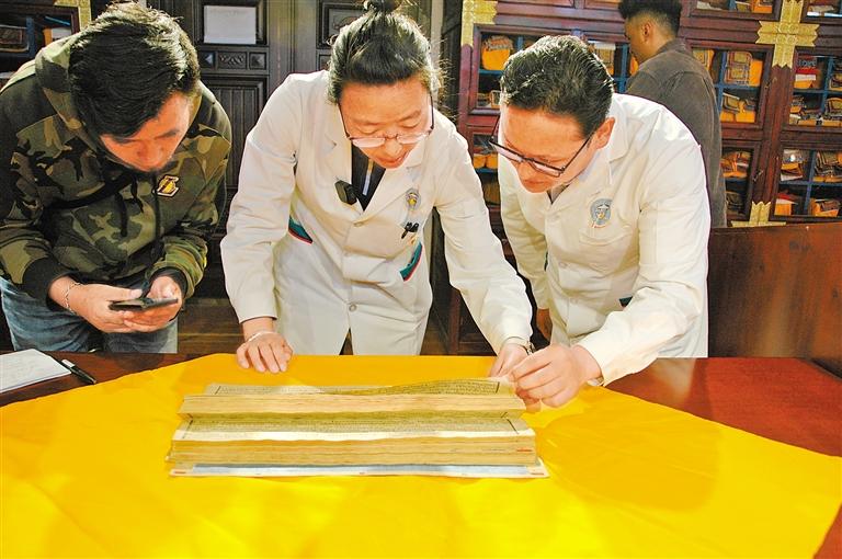 記者了解到,這幾年在以《四部醫(yī)典》為代表的藏醫(yī)藥文獻(xiàn)遺產(chǎn)開(kāi)發(fā)利用方面有了新成果。自治區(qū)藏醫(yī)院正積極探索古籍?dāng)?shù)字化保存和復(fù)制路徑。除“達(dá)旦版”《四部醫(yī)典》外,其他版本均已完成仿真影印出版并發(fā)行。同時(shí),相關(guān)古籍文獻(xiàn)的影印文字對(duì)照版也在自治區(qū)藏醫(yī)院創(chuàng)建的“藏醫(yī)藥與天文歷算數(shù)字化平臺(tái)”內(nèi)網(wǎng)上線(xiàn),不久將完成全部古籍的數(shù)字化并實(shí)現(xiàn)對(duì)外開(kāi)放。