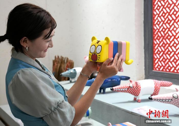 8月6日,拉薩市蓮華之寶中華藏瓷文化旅游體驗園景區(qū)里,工作人員展示卡通陶瓷工藝制品。蓮華之寶中華藏瓷文化旅游體驗園景區(qū)集展覽、銷售與文化體驗于一體,通過與高校開展校企合作等方式,將唐卡繪畫藝術(shù)與陶瓷工藝結(jié)合,傳播優(yōu)秀傳統(tǒng)文化。中新社記者 李林 攝