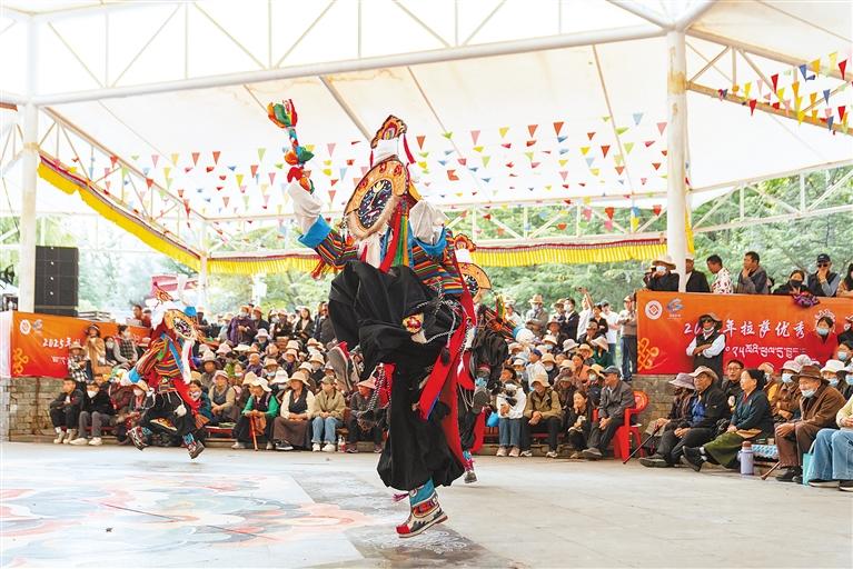 這是8月24日在拉薩宗角祿康公園拍攝的藏戲展演現(xiàn)場(chǎng)。新華社記者 旦增尼瑪曲珠 攝