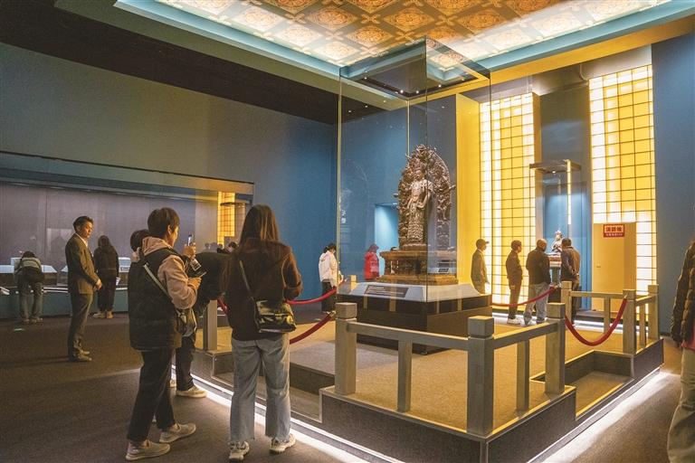西藏博物館副研究員程忠紅表示,《祥開萬象——故宮與西藏文物聯(lián)展》不僅是一次文物精品跨越山河的深情相會,也是一次穿越歷史時空的文化對話,更是貫徹落實新時代黨的治藏方略、推動各民族交往交流交融、增強中華文化認同的重要舉措,也是豐富人民群眾精神文化生活、促進西藏文化事業(yè)繁榮發(fā)展的具體實踐。