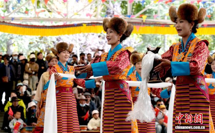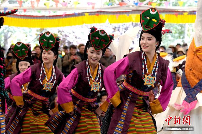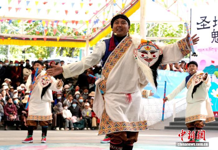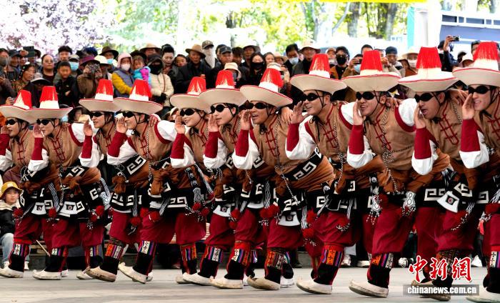 10月19日,“格?;ū崩_市第六屆縣(區(qū))藝術(shù)團(tuán)文藝調(diào)演頒獎(jiǎng)活動(dòng)在布達(dá)拉宮腳下的宗角祿康公園舉行。現(xiàn)場(chǎng),拉薩市各縣(區(qū))藝術(shù)團(tuán)帶來精彩節(jié)目。圖為文藝調(diào)演頒獎(jiǎng)活動(dòng)上的文藝表演。中新社記者 李林 攝