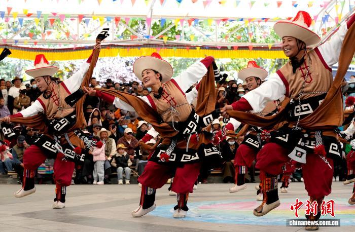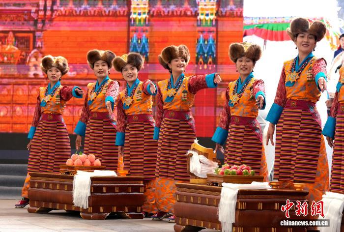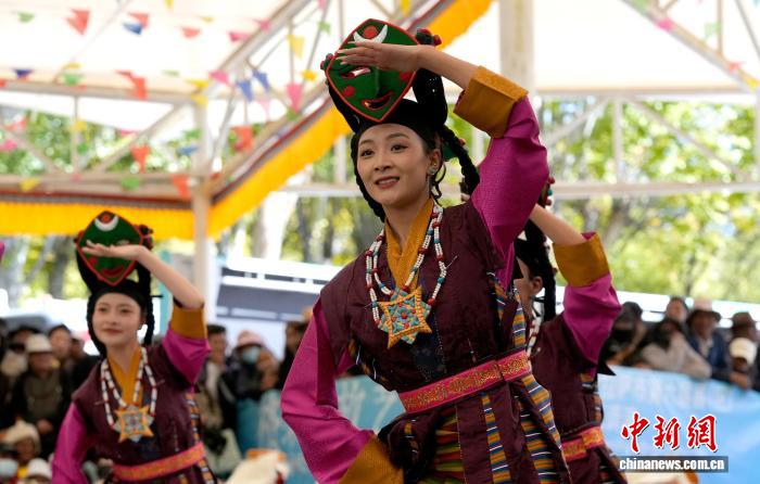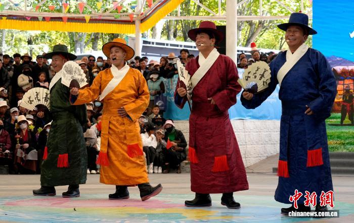 10月19日,“格桑花杯”拉薩市第六屆縣(區(qū))藝術(shù)團(tuán)文藝調(diào)演頒獎(jiǎng)活動(dòng)在布達(dá)拉宮腳下的宗角祿康公園舉行?,F(xiàn)場(chǎng),拉薩市各縣(區(qū))藝術(shù)團(tuán)帶來精彩節(jié)目。圖為文藝調(diào)演頒獎(jiǎng)活動(dòng)上的文藝表演。中新社記者 李林 攝