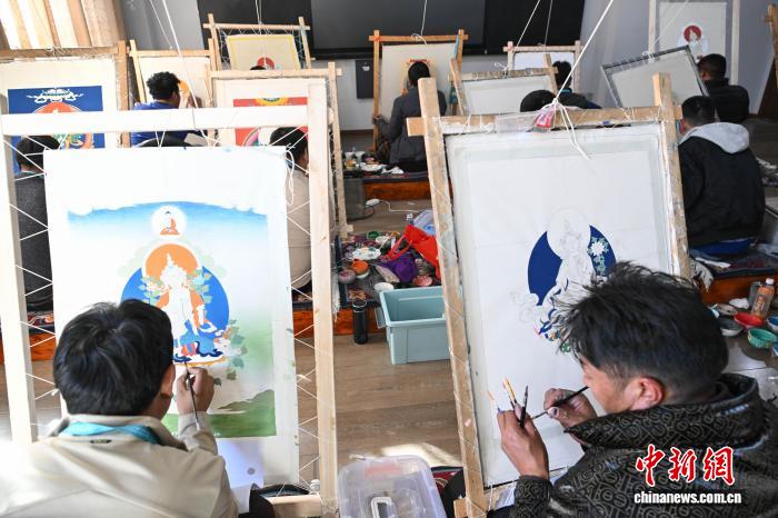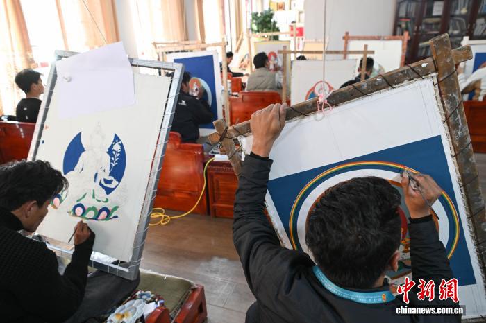 11月23日,第二屆“工巧杯”西藏工藝美術(shù)中青年高技能人才技藝大賽現(xiàn)場實(shí)操技能在拉薩市唐卡藝術(shù)博物館開賽。本次大賽以“薪火相傳 守正創(chuàng)新”為主題,由284名選手來自西藏6(市)地的42個縣(區(qū)),涵蓋唐卡、雕塑、編織等36類工藝。據(jù)悉,西藏工藝美術(shù)行業(yè)現(xiàn)有2700余家市場主體、3.7萬余名從業(yè)者,2024年產(chǎn)值超30億元(人民幣)。圖為參賽選手在畫唐卡。中新社記者 貢嘎來松 攝