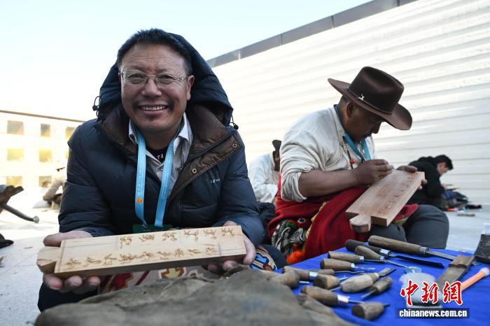 11月23日,第二屆“工巧杯”西藏工藝美術(shù)中青年高技能人才技藝大賽現(xiàn)場實(shí)操技能在拉薩市唐卡藝術(shù)博物館開賽。本次大賽以“薪火相傳 守正創(chuàng)新”為主題,由284名選手來自西藏6(市)地的42個縣(區(qū)),涵蓋唐卡、雕塑、編織等36類工藝。據(jù)悉,西藏工藝美術(shù)行業(yè)現(xiàn)有2700余家市場主體、3.7萬余名從業(yè)者,2024年產(chǎn)值超30億元(人民幣)。圖為參賽選手展示木雕作品。中新社記者 貢嘎來松 攝