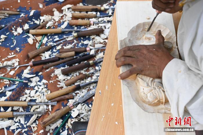 11月23日,第二屆“工巧杯”西藏工藝美術(shù)中青年高技能人才技藝大賽現(xiàn)場實(shí)操技能在拉薩市唐卡藝術(shù)博物館開賽。本次大賽以“薪火相傳 守正創(chuàng)新”為主題,由284名選手來自西藏6(市)地的42個縣(區(qū)),涵蓋唐卡、雕塑、編織等36類工藝。據(jù)悉,西藏工藝美術(shù)行業(yè)現(xiàn)有2700余家市場主體、3.7萬余名從業(yè)者,2024年產(chǎn)值超30億元(人民幣)。圖為參賽選手在木板上雕刻圖案。中新社記者 貢嘎來松 攝