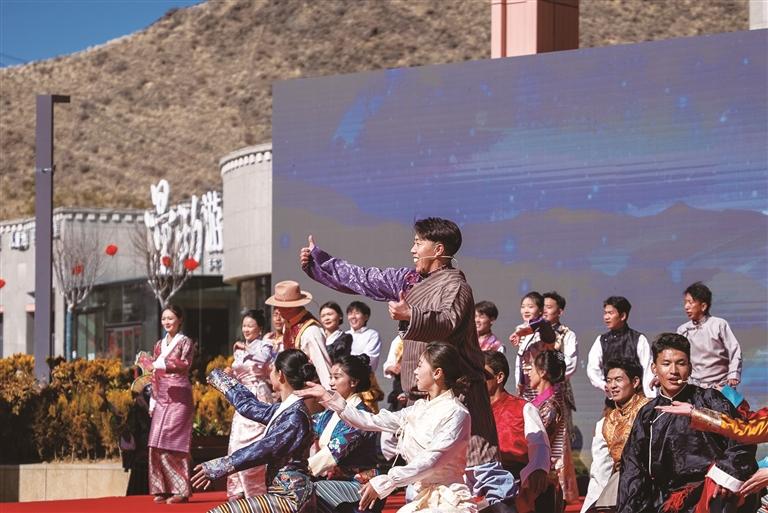 文藝展演環(huán)節(jié)精彩紛呈,10個(gè)精品節(jié)目輪番上演、亮點(diǎn)迭出。舞蹈《羅布日》《萬(wàn)馬奔騰》氣勢(shì)恢宏,展現(xiàn)馬年奮進(jìn)姿態(tài);女子群舞《石榴花開(kāi)》寓意民族團(tuán)結(jié)、同心向黨的美好圖景;男子群舞《迎親》、少兒舞蹈《年代秀》、戲曲舞蹈《戲韻人生》各具韻味;樂(lè)器演奏《夏爾巴的歌聲飛向天安門(mén)》《我的家鄉(xiāng)日喀則》深情悠揚(yáng);相聲《傳統(tǒng)與現(xiàn)代》妙語(yǔ)連珠,在笑聲中傳遞文化自信;原創(chuàng)歌曲《脈動(dòng)堆龍》唱響區(qū)域發(fā)展活力;壓軸舞蹈《萬(wàn)年吉祥》送上滿滿祝福,將現(xiàn)場(chǎng)氣氛推向高潮。