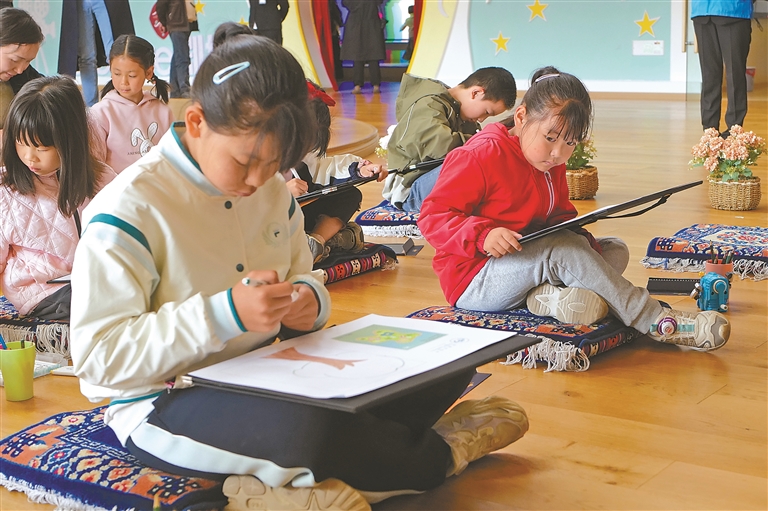 市民在西藏博物館參與文創(chuàng)畫作活動(dòng)。記者 次仁平措 攝