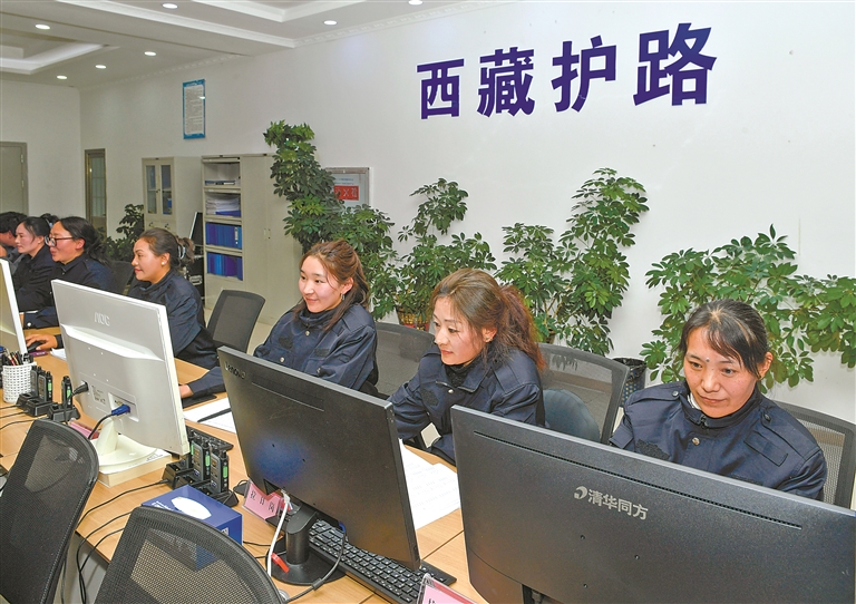 西藏自治區(qū)綜治委鐵路護(hù)路聯(lián)防辦公室工作人員堅(jiān)守崗位,做好鐵路治安防控、隱患排查整治等工作。記者 丹增群培 攝
