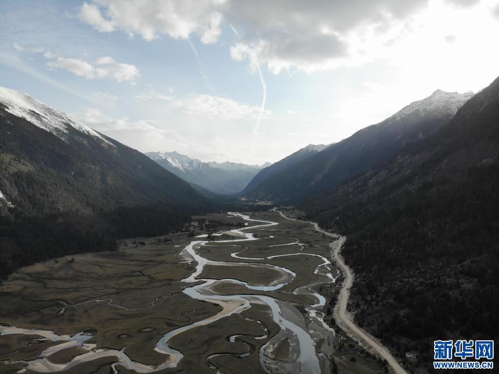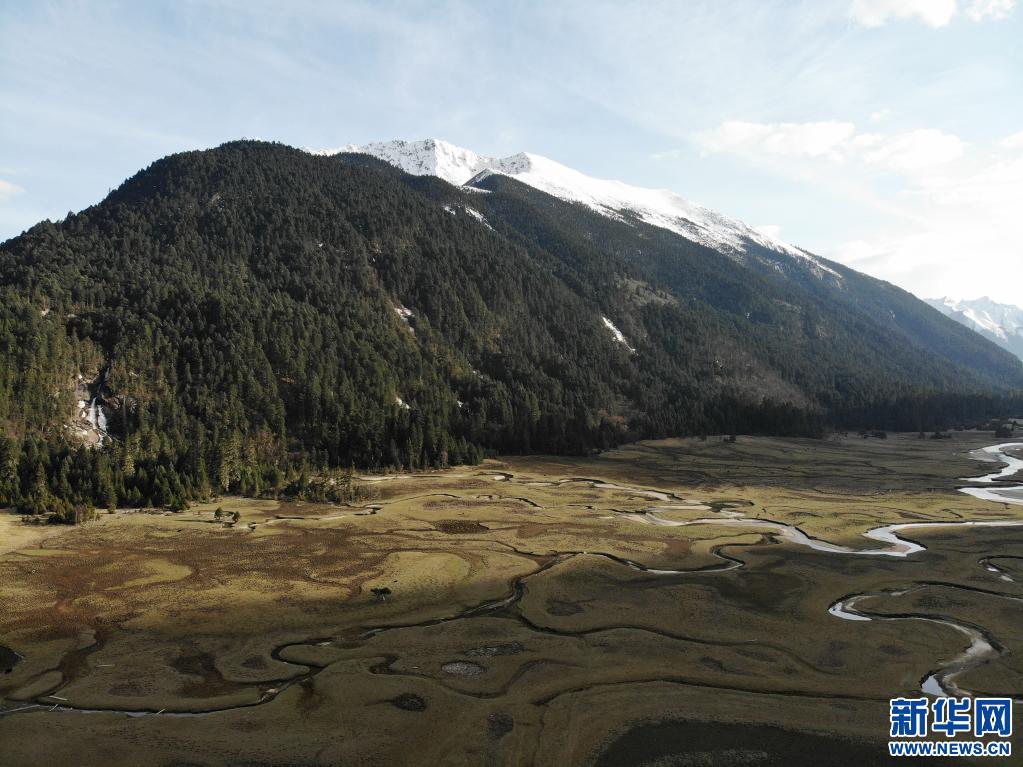 這是5月1日拍攝的雪山間的新措和森林、牧場(chǎng)(無(wú)人機(jī)照片)。新華社記者 孫瑞博 攝
