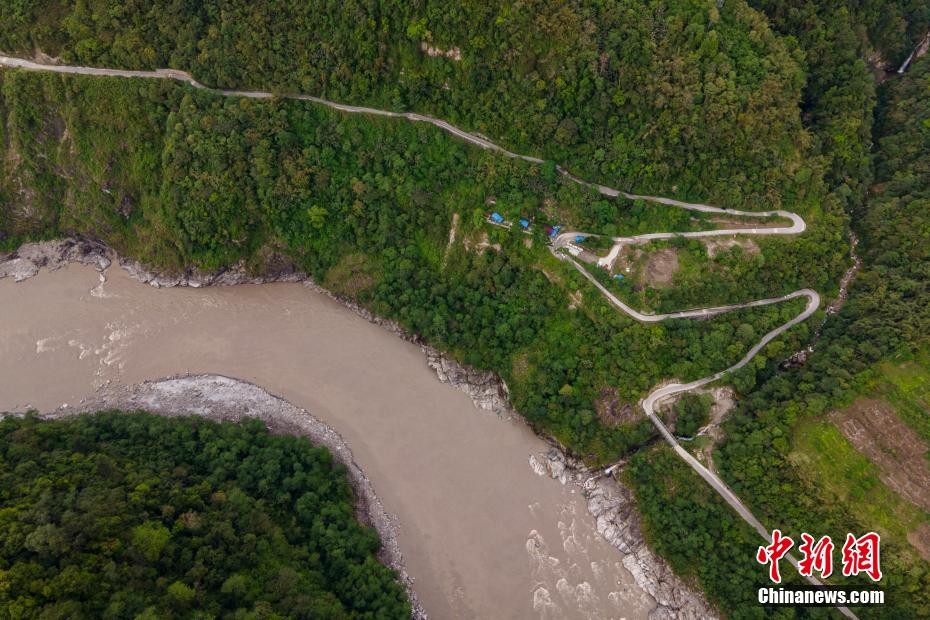 圖為林多大拐彎,畫面左側(cè)沿河流蜿蜒而下的為著名的墨脫公路。 江飛波 攝
