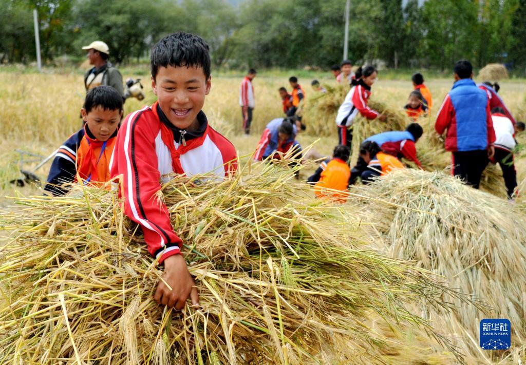 時下正值青稞成熟的季節(jié),西藏日喀則市上海實驗學校40余名師生來到日喀則市甲措雄鄉(xiāng),參與當?shù)氐那囡崭?,把“思政課”上在青稞地里。學生們在實踐中體會勞動的艱辛,在收獲中感受勞動的快樂。