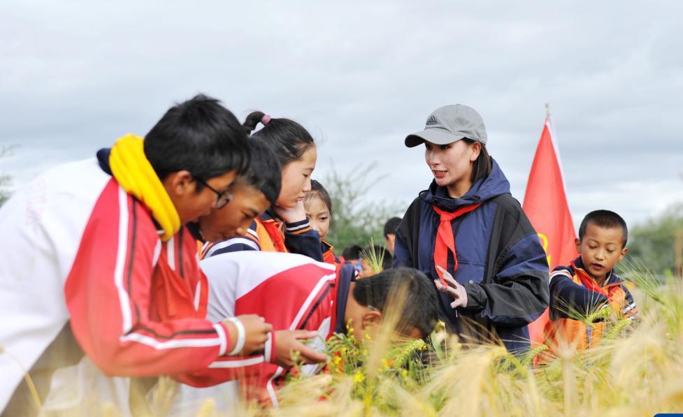 日喀則市上海實(shí)驗(yàn)學(xué)校德育副校長(zhǎng)潘杰和學(xué)生在青稞地里交流。[詳細(xì)]