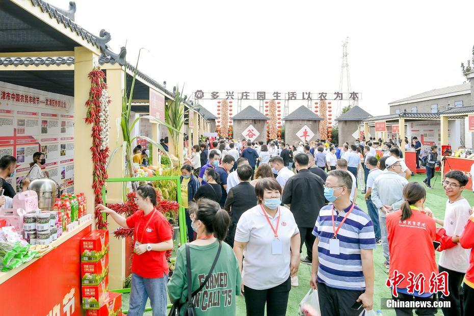 9月23日,2021中國(guó)農(nóng)民豐收節(jié)河南省主會(huì)場(chǎng)在焦作市武陟縣嘉應(yīng)觀啟幕?;顒?dòng)現(xiàn)場(chǎng),隨處可見(jiàn)“豐收”符號(hào),各類(lèi)農(nóng)副產(chǎn)品琳瑯滿(mǎn)目,船上漁民捧著魚(yú)喜笑顏開(kāi)。圖為農(nóng)產(chǎn)品亮相河南省主會(huì)場(chǎng)。闞力 攝