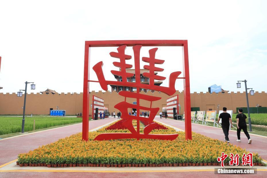9月23日,航拍寧夏賀蘭縣創(chuàng)意稻田。當(dāng)日是第四個(gè)中國(guó)農(nóng)民豐收節(jié),寧夏多地舉行慶祝農(nóng)民豐收節(jié)活動(dòng)。(無(wú)人機(jī)照片) 中新社記者 謝宇 攝