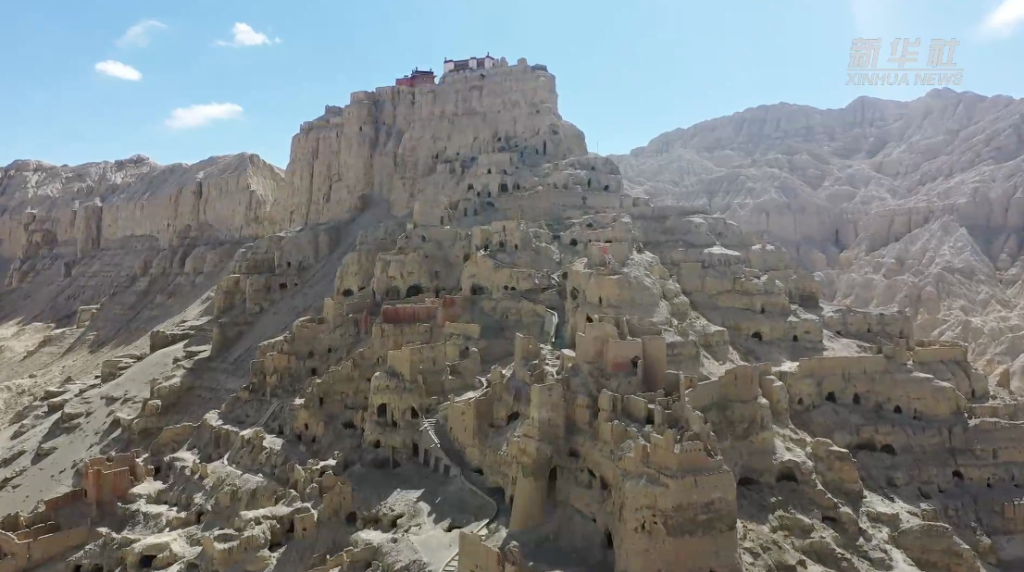 古格王國遺址位于西藏阿里地區(qū)札達縣境內,是國家級重點文物保護單位,曾是西藏地方割據政權古格王朝的中心?,F(xiàn)存遺址依山勢而建,由300余座房屋、300余孔洞窟及2條地下通道等組成,總占地面積18萬平方米,相對高差175米。古格王國遺址為研究西藏歷史,尤其是藏族古代建筑史提供了重要實物資料。圖為鳥瞰西藏阿里地區(qū)古格王國遺址。(無人機照片)