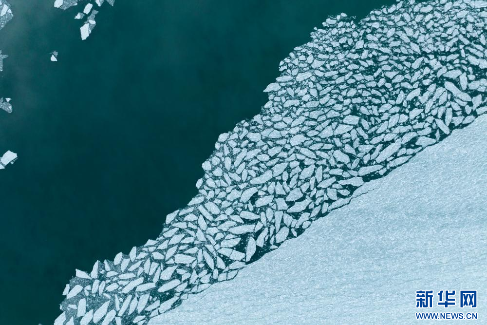 形狀各異的浮冰漂在水面上