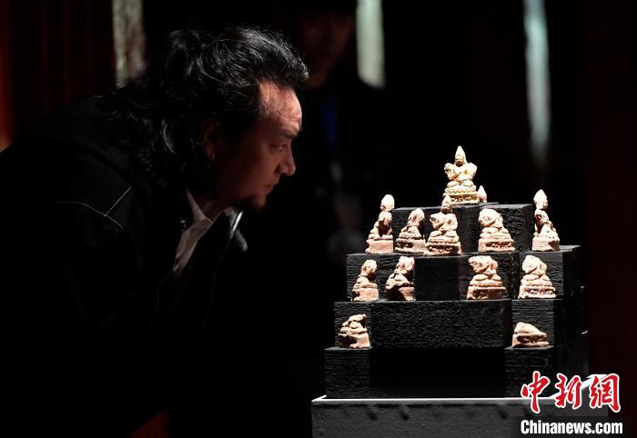 4月13日,觀眾欣賞展覽中的擦擦(脫模泥塑造像)?!±盍?攝