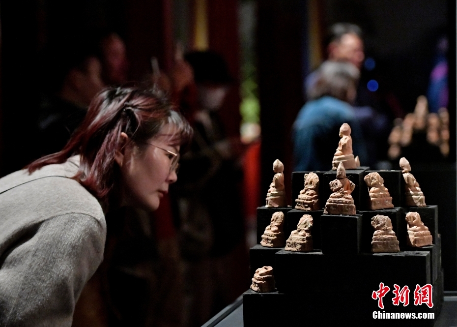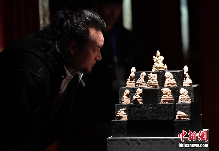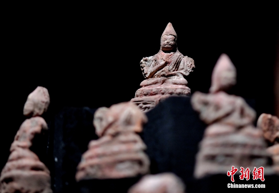 4月13日下午,“聚沙為塔——吉崩崗拉康文物回歸特別展覽”在拉薩吉本崗藝術(shù)中心開幕,以近期回歸古建的3000余件文物為主要內(nèi)容,梳理了古建歷史與文物源流。圖為展覽中的擦擦(脫模泥塑造像)。