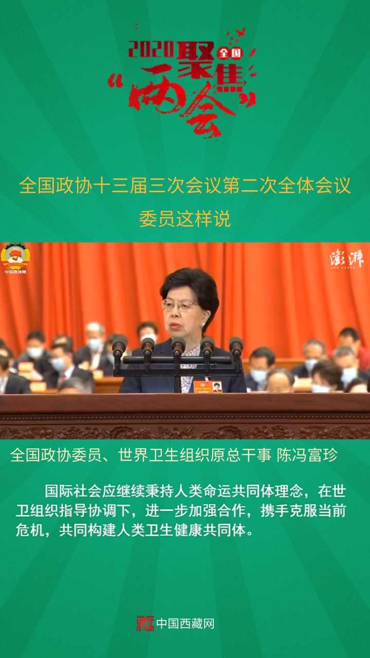 全國政協(xié)委員、世界衛(wèi)生組織原總干事陳馮富珍發(fā)言說,國際社會(huì)應(yīng)繼續(xù)秉持人類命運(yùn)共同體理念,在世衛(wèi)組織指導(dǎo)協(xié)調(diào)下,進(jìn)一步加強(qiáng)合作,攜手克服當(dāng)前危機(jī),共同構(gòu)建人類衛(wèi)生健康共同體。