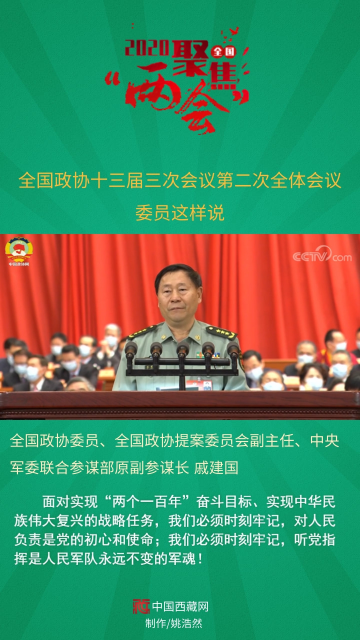 全國政協(xié)委員、全國政協(xié)提案委員會(huì)副主任、中央軍委聯(lián)合參謀部原副參謀長戚建國發(fā)言說,面對(duì)實(shí)現(xiàn)“兩個(gè)一百年”奮斗目標(biāo)、實(shí)現(xiàn)中華民族偉大復(fù)興的戰(zhàn)略任務(wù),我們必須時(shí)刻牢記,對(duì)人民負(fù)責(zé)是黨的初心和使命;我們必須時(shí)刻牢記,聽黨指揮是人民軍隊(duì)永遠(yuǎn)不變的軍魂!