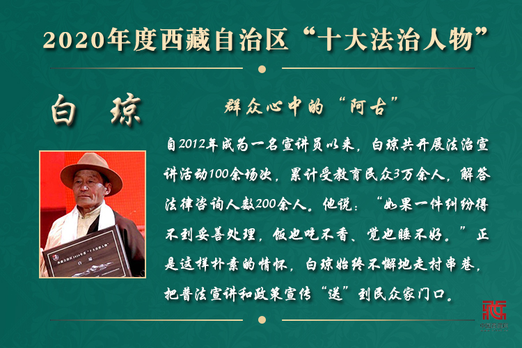 在法治西藏建設(shè)過程中,涌現(xiàn)出一大批辛勤付出、任勞任怨、一心為民、敢于亮劍、影響廣泛、群眾認(rèn)可的典型人物。他們長年累月奔波在基層一線,活躍在田間地頭,踐行法治理念,彰顯公平正義,在高原大地傳播法治精神,為各族群眾送去法治溫暖。(中國西藏網(wǎng) 責(zé)編/常薇薇 美編/朱翠平)