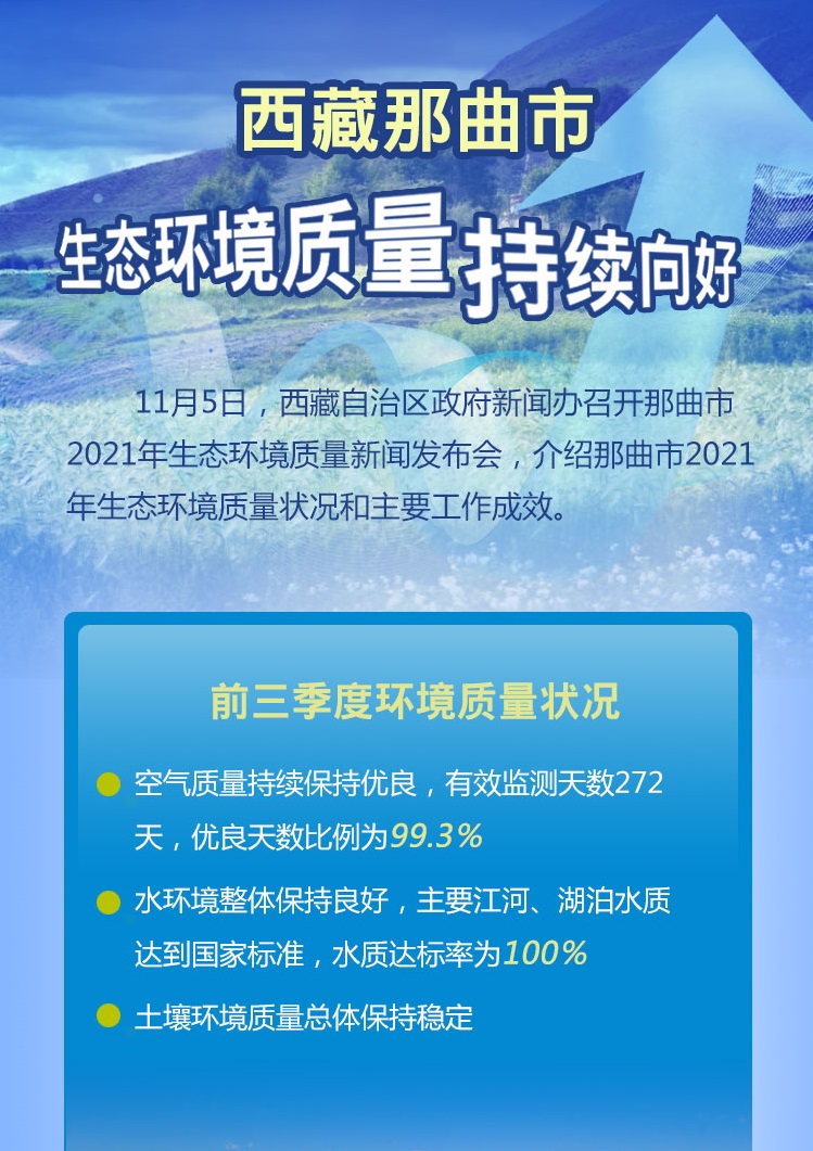 11月5日,西藏自治區(qū)政府新聞辦召開那曲市2021年生態(tài)環(huán)境質(zhì)量新聞發(fā)布會,介紹那曲市2021年生態(tài)環(huán)境質(zhì)量狀況和主要工作成效。[詳細(xì)] -