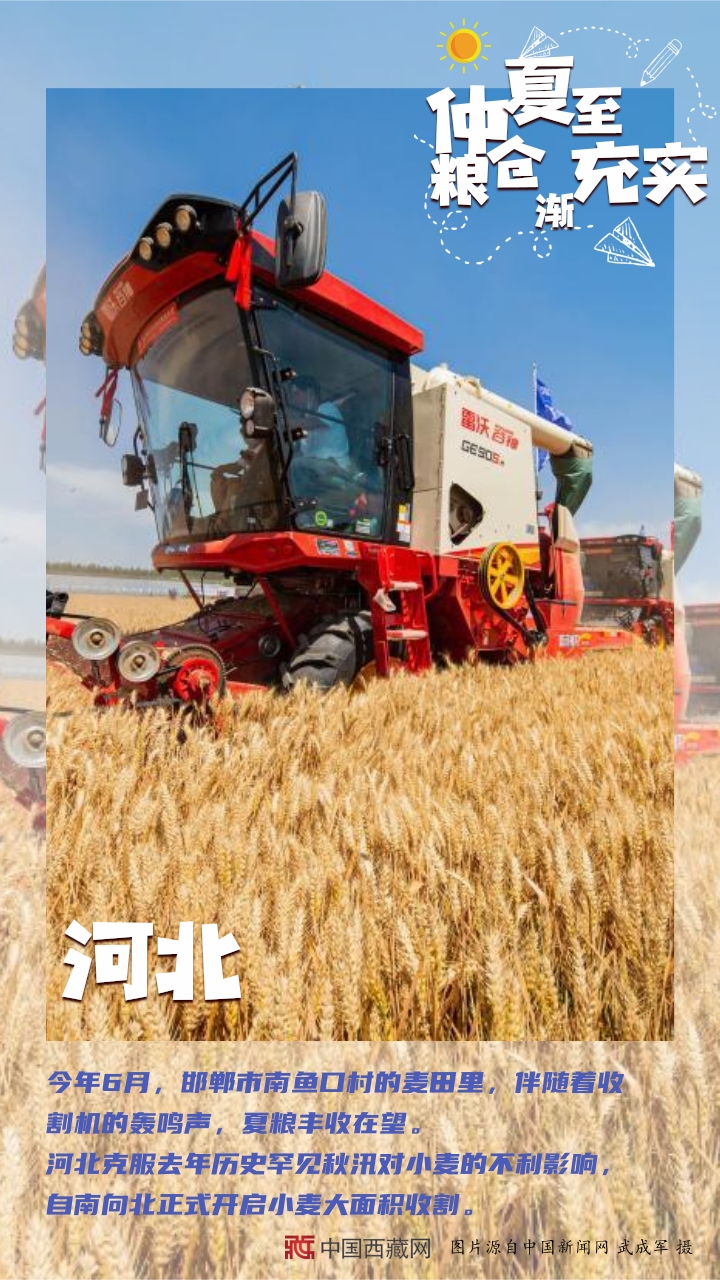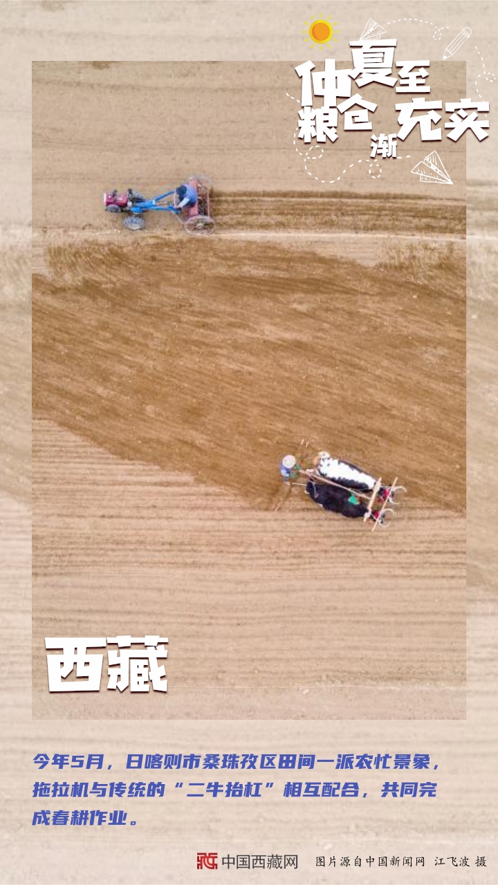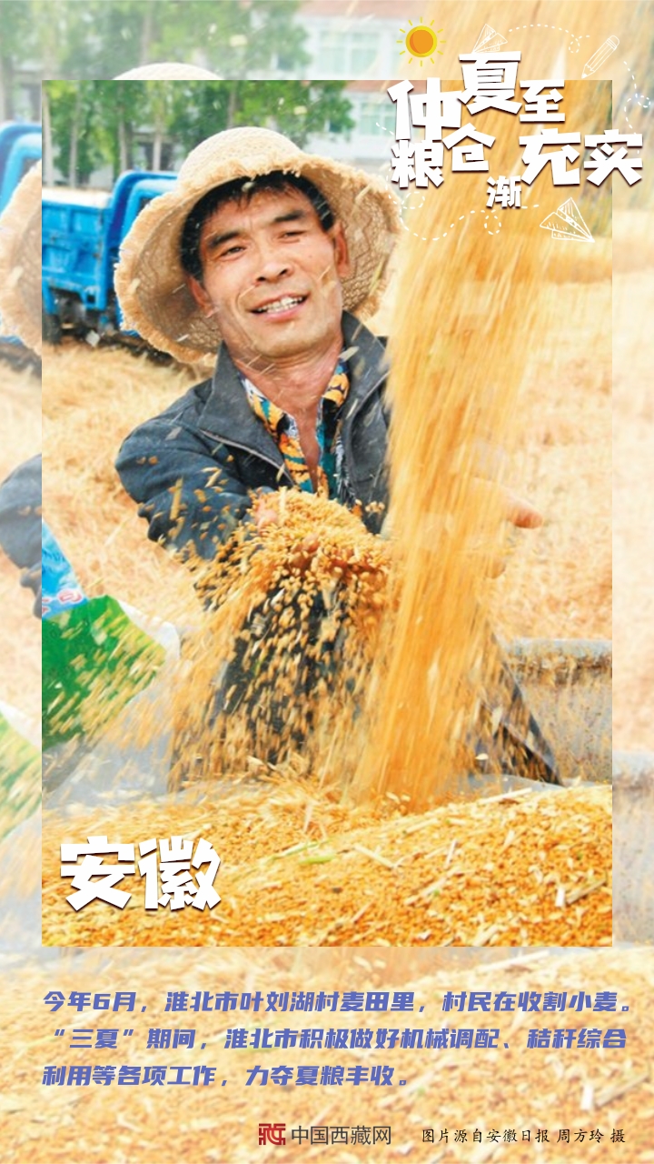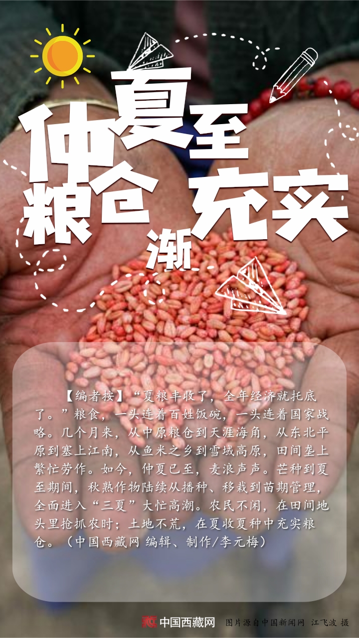 【編者按】“夏糧豐收了,全年經濟就托底了。”糧食,一頭連著百姓飯碗,一頭連著國家戰(zhàn)略。幾個月來,從中原糧倉到天涯海角,從東北平原到塞上江南,從魚米之鄉(xiāng)到雪域高原,田間壟上繁忙勞作。如今,仲夏已至,麥浪聲聲。芒種到夏至期間,秋熟作物陸續(xù)從播種、移栽到苗期管理,全面進入“三夏”大忙高潮。農民不閑,在田間地頭里搶抓農時;土地不荒,在夏收夏種中充實糧倉。(中國西藏網 編輯、制作/李元梅)