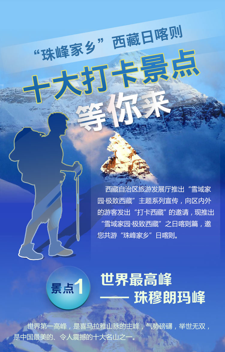 西藏自治區(qū)旅游發(fā)展廳推出“雪域家園·極致西藏”主題系列宣傳,向區(qū)內(nèi)外的游客發(fā)出“打卡西藏”的邀請,現(xiàn)推出“雪域家園·極致西藏”之日喀則篇,邀您共游“珠峰家鄉(xiāng)”日喀則。 [詳細(xì)] -
