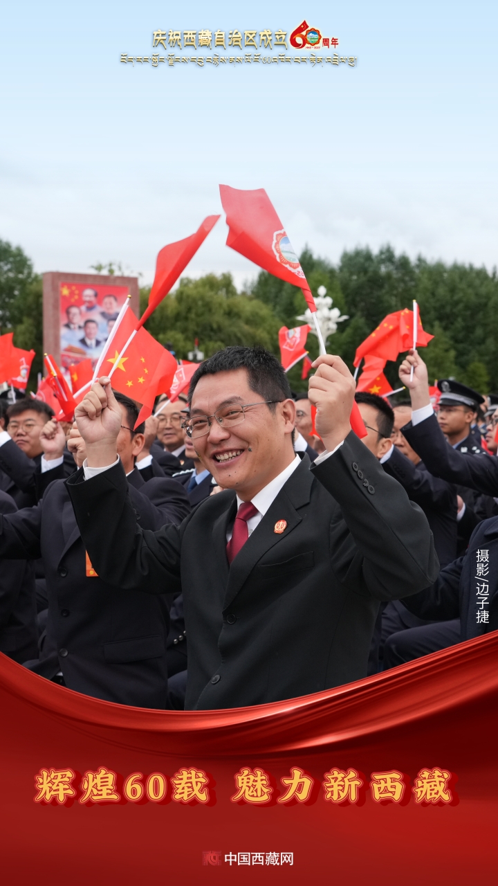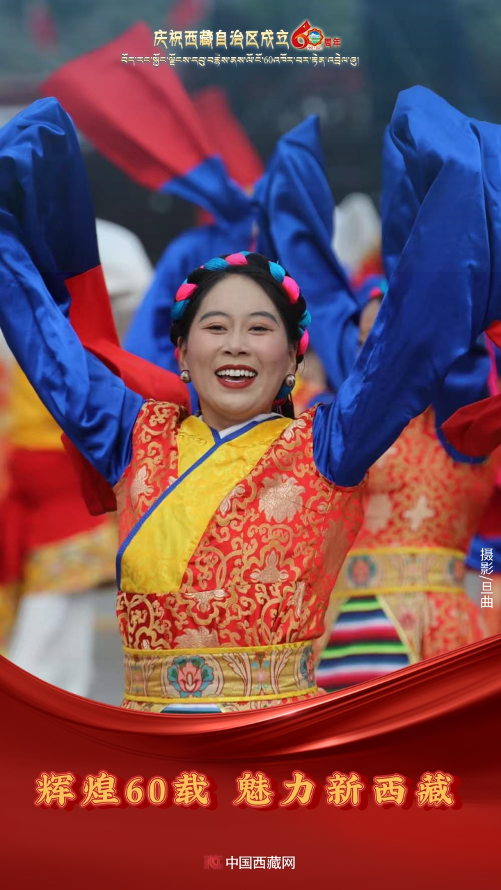 六十年風(fēng)雨兼程,六十年春華秋實,都在這一刻化作人們真摯的笑容與熱烈的歡呼。讓我們祝福祖國!祝西藏自治區(qū)繁榮昌盛,祝西藏各族人民幸福安康?。ㄖ袊鞑鼐W(wǎng)攝影/邊子捷 旦曲 趙振宇 制作/王茜)