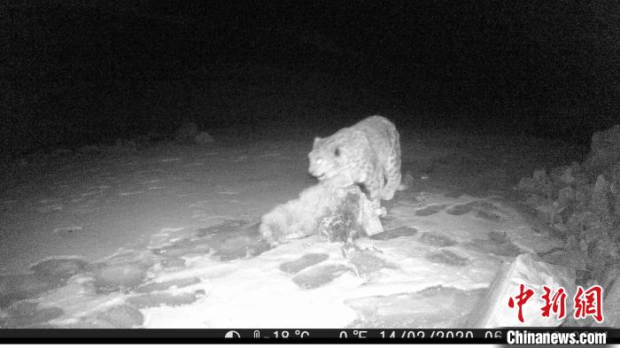 視頻截圖為紅外相機在青海省海北藏族自治州海晏縣夏格爾山拍攝到的雪豹清晰影像。