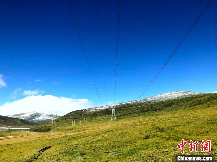 圖為世界海拔最高的330千伏輸變電工程玉樹聯(lián)網(wǎng)工程輸電線路穿越高山草原?;菸睦?攝