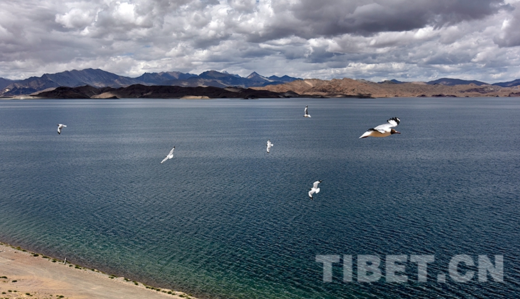 團(tuán)團(tuán)云朵懸停藍(lán)天,班公湖湖面微波蕩漾。湖岸藏野驢、黑頸鶴悠閑漫步;湖邊棕頭鷗滑翔游弋、魚翔淺底?!笆澜缥菁沟奈菁埂?,人們“不負(fù)青山”,也收獲了“金山銀山”。(中國西藏網(wǎng) 記者/王媛媛)