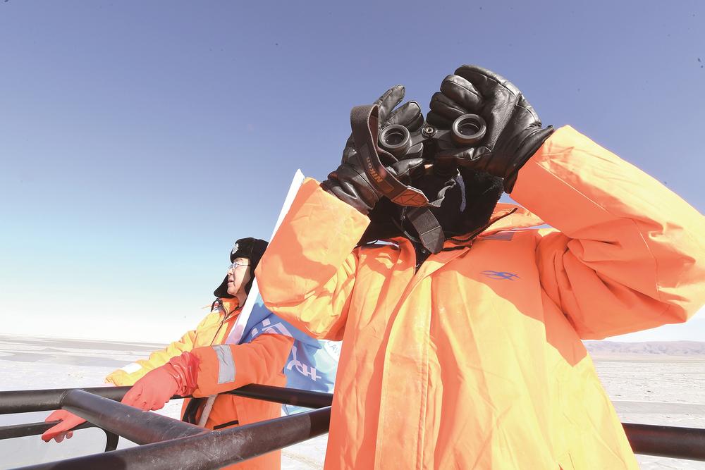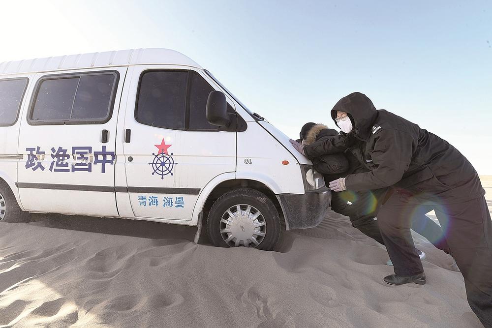 車緩緩駛向青海湖深處,即使穿得這么厚實(shí),但寒風(fēng)襲來(lái)時(shí),巡湖隊(duì)員們依舊被凍得直哆嗦。