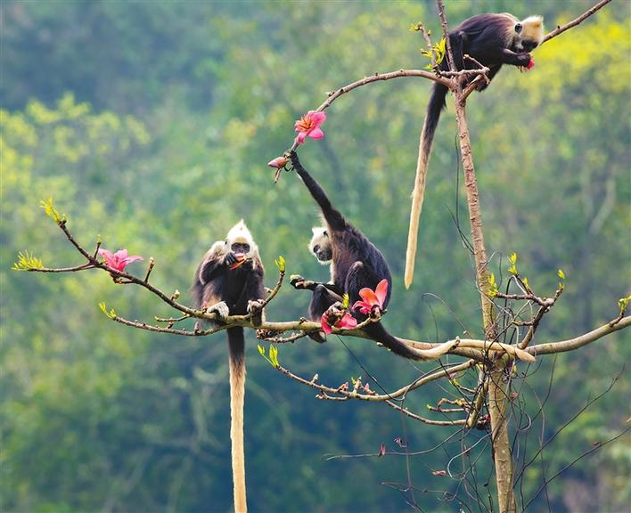 在廣西崇左白頭葉猴國家級自然保護區(qū)拍攝的白頭葉猴(資料照片)。新華社發(fā) (廣西崇左白頭葉猴國家級自然保護區(qū)提供)