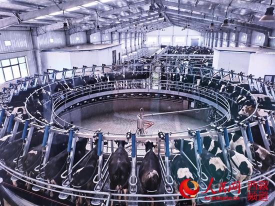 全自動轉(zhuǎn)盤式擠奶車間。 李海霞 攝