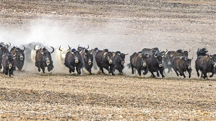 圖為羌塘草原上奔騰的野牦牛。通訊員 曹枝清 攝