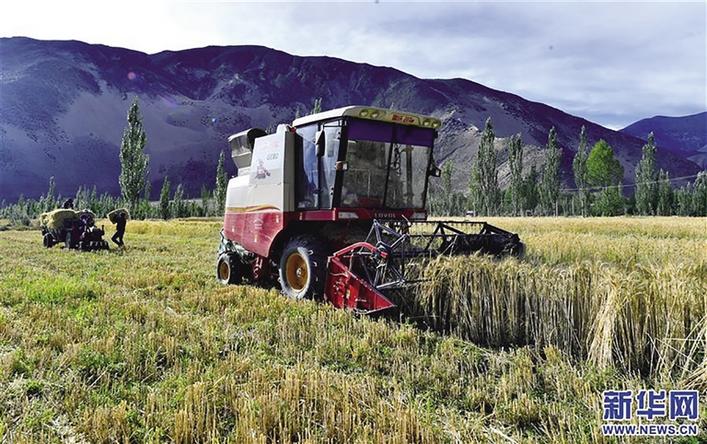 山南市扎囊縣松卡居委會的居民在收割青稞。新華社