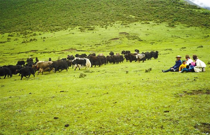 圖為墨竹工卡縣斯布鄉(xiāng)牧民在斯布溝牧場(chǎng)放牧。記者 格桑吉美 攝