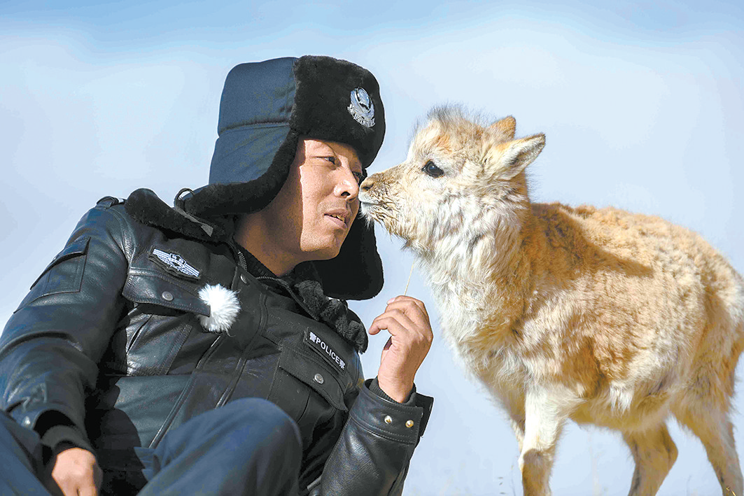 天上的措池,老村支書然西尕瑪望著漸行漸遠(yuǎn)的藏羚羊群。