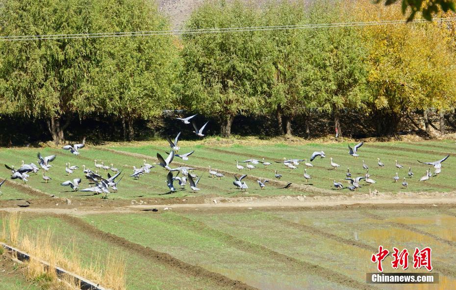 藏南谷地迎來越冬候鳥 斑頭雁、赤麻鴨等在碧水藍(lán)天間嬉戲覓食