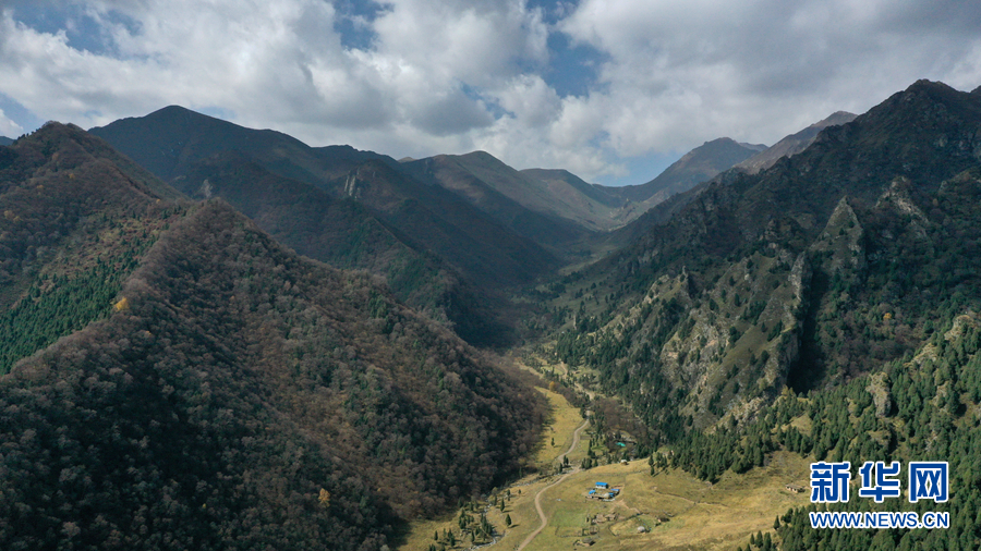 海東市互助土族自治縣北山國(guó)家森林地質(zhì)公園扎龍溝秋景(無(wú)人機(jī)照片)。新華社記者 張宏祥 攝