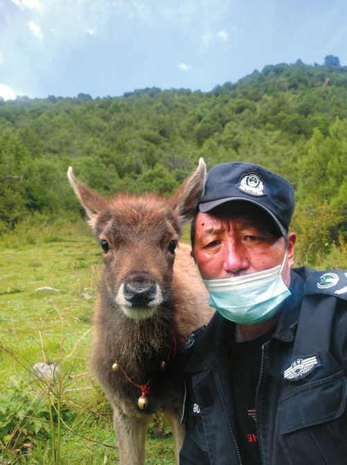 更思村與三江源毗鄰,海拔超過4000米,這里生活著雪豹、白唇鹿、棕熊、巖羊等珍稀動物。其中有一只國家一級保護動物白唇鹿幼崽,目前也在護林員的照料下慢慢長大。