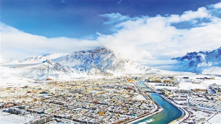 阿里地區(qū)持續(xù)開展河湖“清四亂”專項(xiàng)行動(dòng),實(shí)現(xiàn)河暢、水清、岸綠、景美,河湖資源永續(xù)利用。 圖為雪后的獅泉河。 記者 洛桑旦增 攝