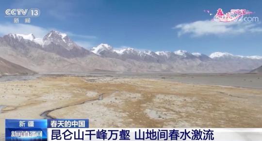 立春后,新疆境內(nèi)的昆侖山山色黑白相交,更加雄渾有力,藍(lán)天、白云、雪山構(gòu)成了一幅壯美的畫卷。和高山的積雪不同,山下的冰河融化、春水激流,野生牦牛等動物聚集在河邊暢飲、吃草,彰顯出春天的勃勃生機。